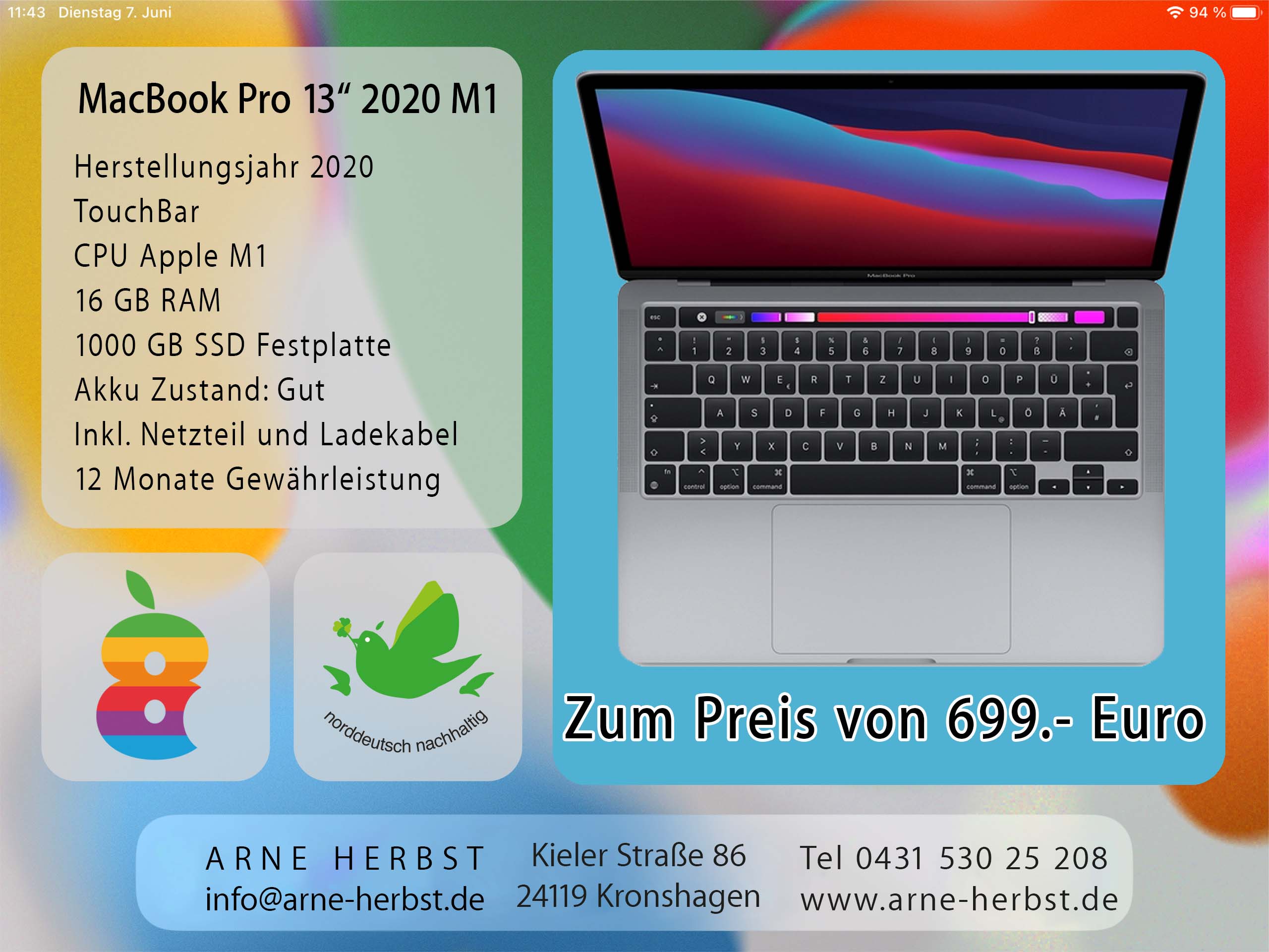MacBook Pro 13″ aus 2020 für 699.- Euro