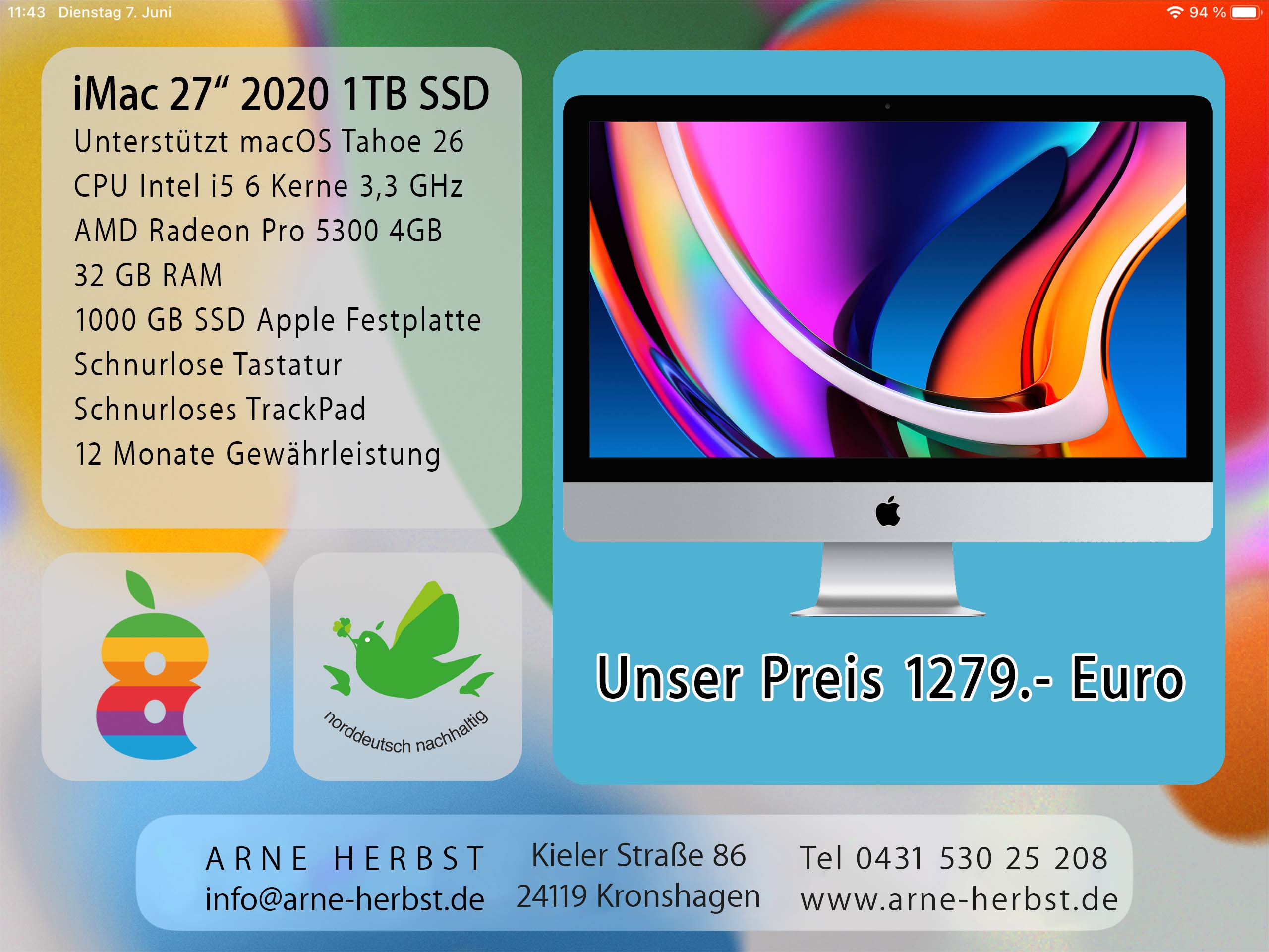 iMac 27″ aus 2020 mit macOS Tahoe (26)  für 1279.- Euro